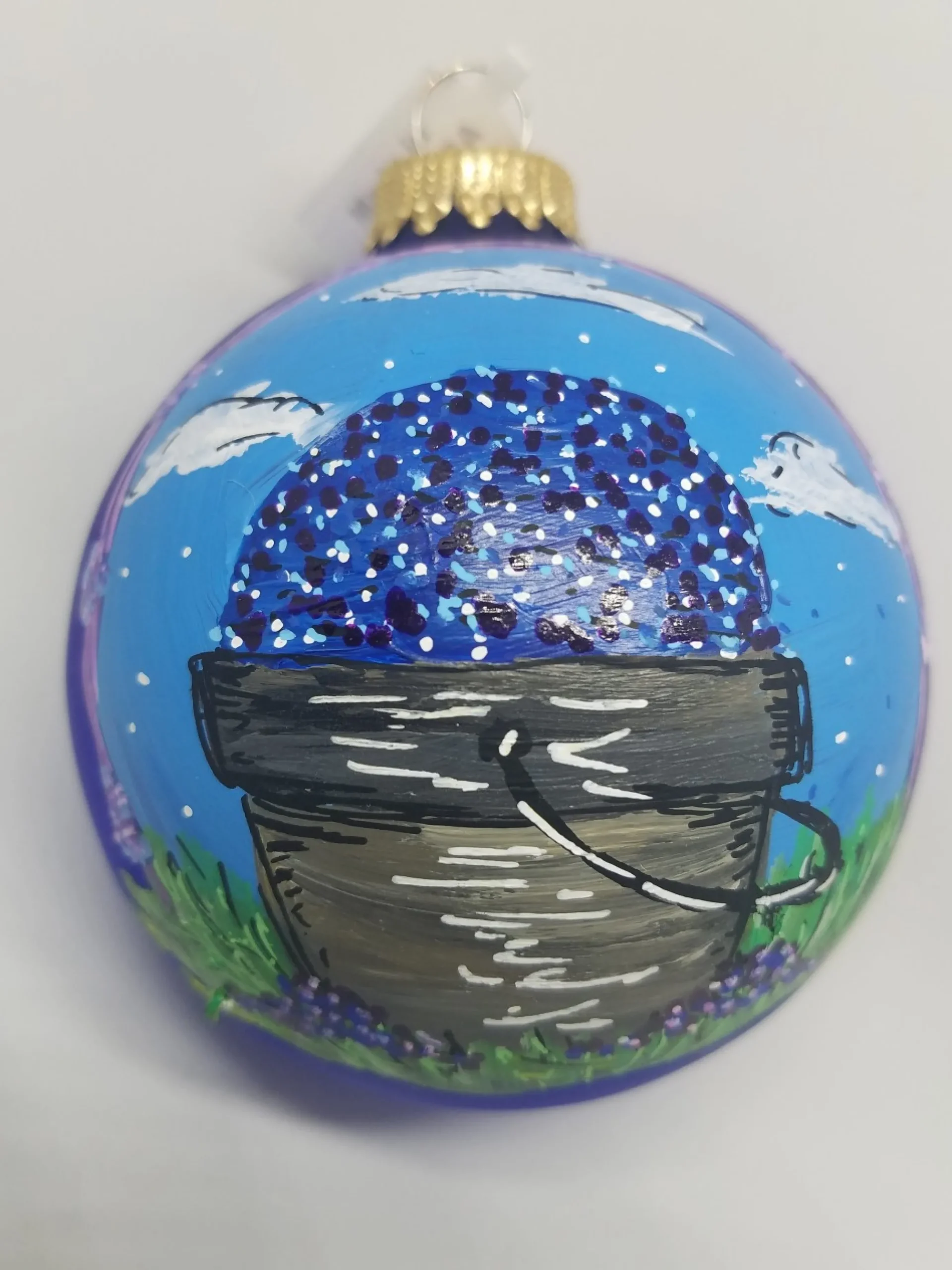Be the first to review “Blueberry Pail Hand Painted Glass Ornament” Cancel reply