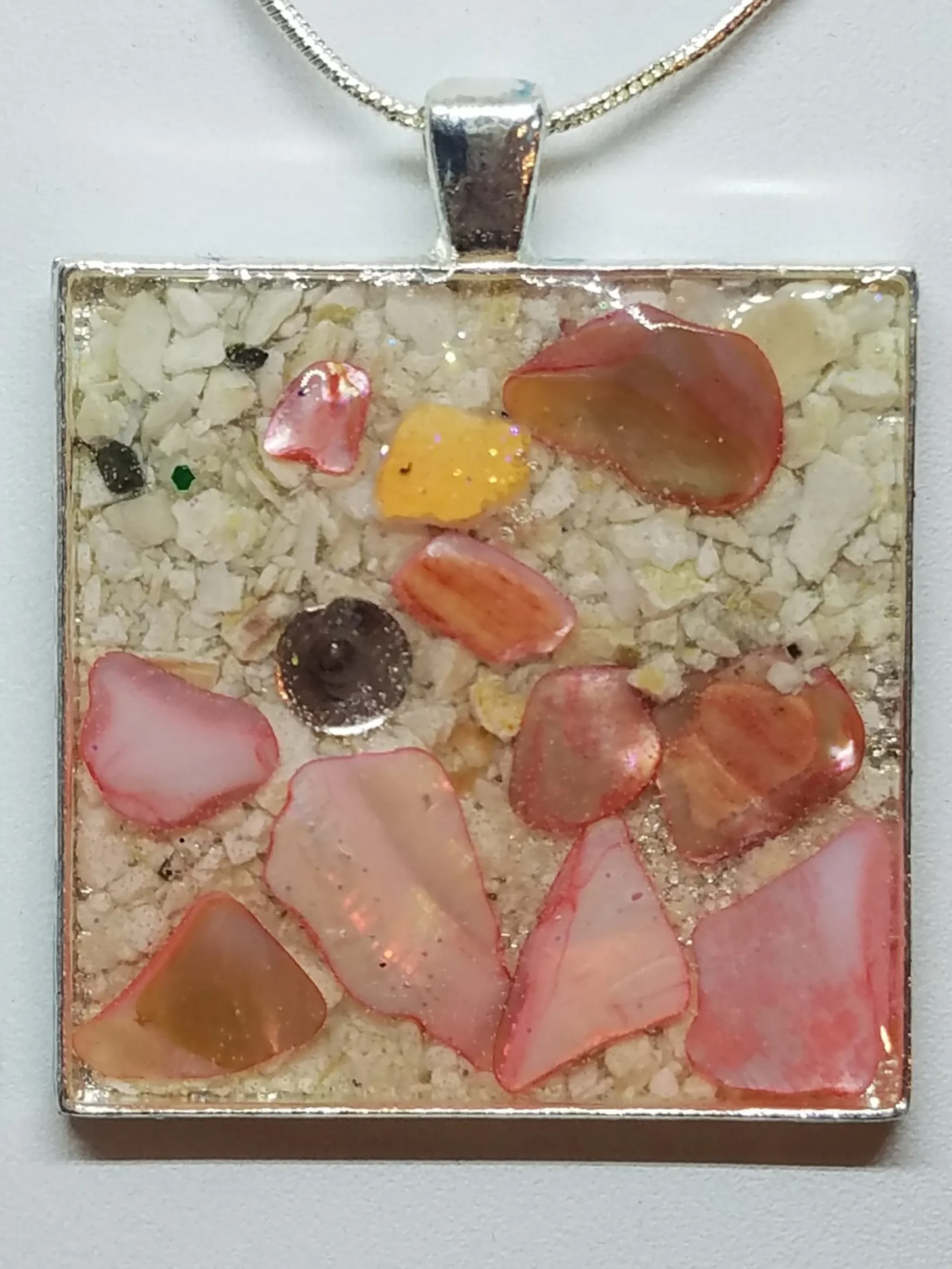 Be the first to review “Crushed Clam And Pink Abalone Shell With Lobster Shell Accent Jewelry Pendant” Cancel reply