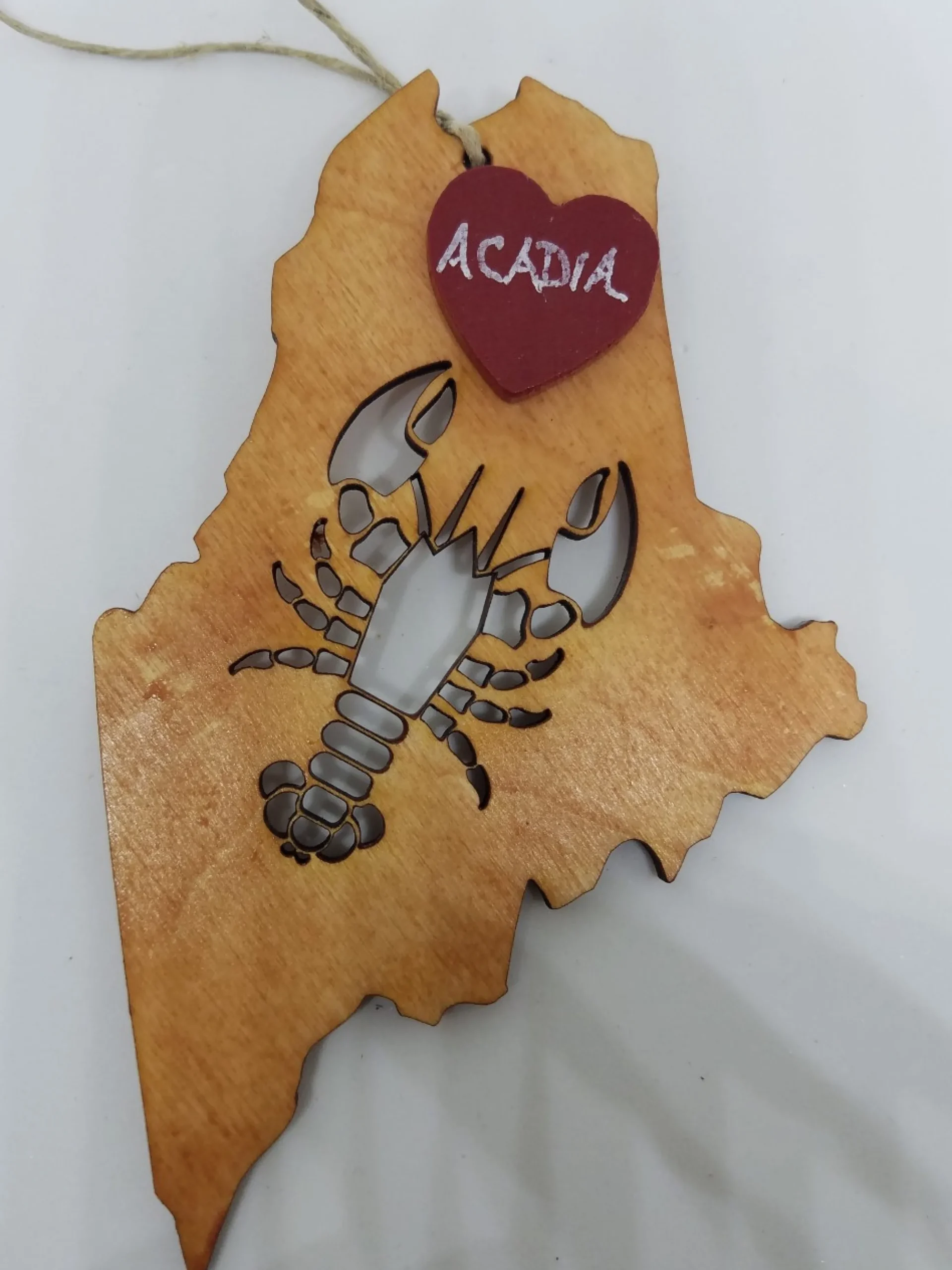 The Lobster Maine State Wood Ornament Is A Great Addition To Your Ornament Collection.These Maine State Wood Ornaments Are Unique To The Christmas Vacation Shop. We Have Taken The Maine Shape And Have Had Images Relieved Using A Laser Process. Choose From Moose, Lighthouse, Or Lobster Reliefs. The Ornaments Are Finished With A Smooth Tint And Embellished With A Heart. They Are Unique And Exclusive To The Christmas Vacation Shop.