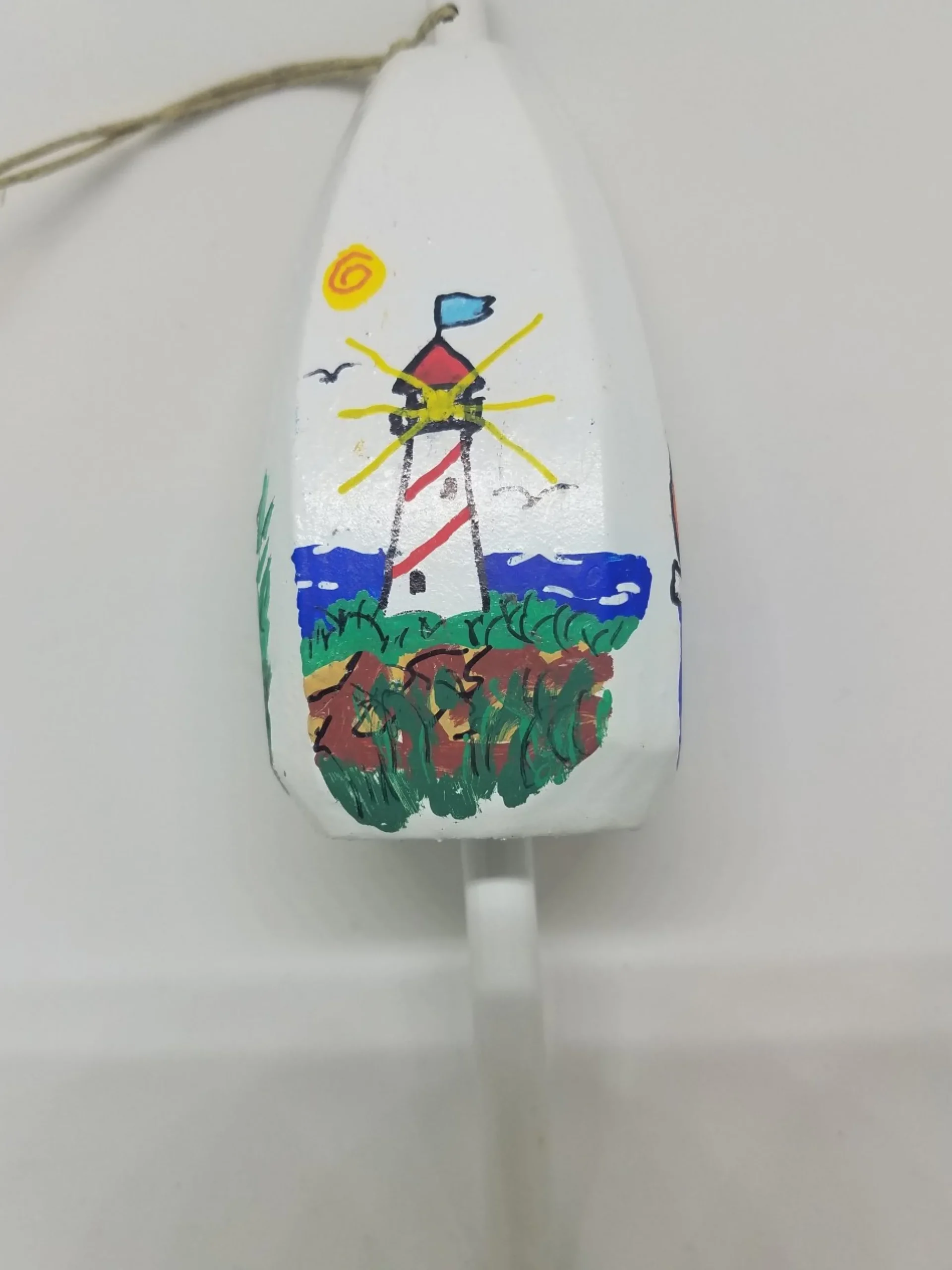 The Red And White Striped Lighthouse On White Buoy OrnamenT Is Unique And Very Nautical Buoys Are Seen Bobbing Along The Coast To Help Fisherman Find Their Lobster And Crab Traps, So We Have Made Miniature Versions As Ornaments! Each Buoy Ornament Is Made Of Wood And Individually Handpainted With Acrylic Paints With Various Images Of New England.